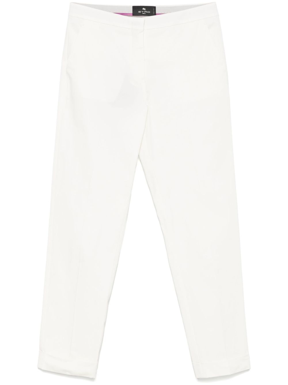 tailored trousers Highlights - White - Concealed front button, hook and zip fastening - Two side inset pockets - Two rear welt pockets - Turn-up cuffs Made in Italy Composition Cotton 97%, Elastane 3% SIZE & FIT Model measurements Height 5 ft 11 in(1.8 m) Bust/Chest 32.67 in(83 cm) Hips 36.22 in(92 cm) Waist 24.4 in(62 cm) FittingInformation Designed with a cigarette cut, these trousers allow for a close fit at the waist and offer an unrestricted fit through to the ankle Cropped in length Made from a midweight stretch fabric, this piece offers elasticity and flexibility when worn