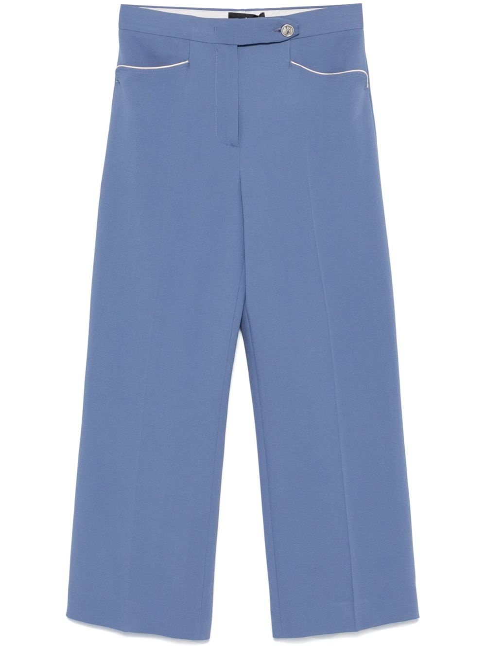 tailored trousers Highlights - Cornflower blue - Concealed fly and button fastening - Two side slit pockets - Two rear button-fastening jetted pockets - Pressed crease Made in Italy Composition Outer: Viscose 66%, Acetate 31%, Spandex/Elastane 3% Lining: Polyester 100% SIZE & FIT Model measurements Height 5 ft 11 in(1.8 m) Bust/Chest 32.67 in(83 cm) Hips 36.22 in(92 cm) Waist 24.4 in(62 cm) FittingInformation Designed with a flared hem, these trousers allow for a close fit at the waist with a slim fit over the leg and widening towards the hem Made from a midweight stretch fabric, this piece offers elasticity and flexibility when worn