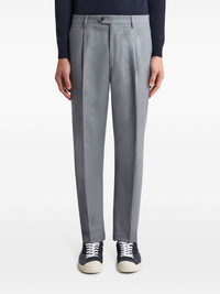 tailored wool trousers Highlights - Ash grey - Wool/linen/flax - Pleat detailing - Mid-rise - Belt loops - Concealed fly and button fastening - Two side inset pockets - Two rear button-fastening jetted pockets - Tailored cut Made in Italy Composition Wool 100%, Linen/Flax 100%
