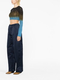 tapered cargo trousers Etro's take on the classic cargo trouser is crafted in Italy from duchess fabric to a voluminous, wide-leg silhouette that subtly tapers at the hems. The label's signature Pegaso motif details the patch back pocket. Highlights - Navy blue - Signature pegaso motif - High-waisted - Tapered leg - Wide leg - Floor-length - Two diagonal pockets to the sides - Two rear patch pockets - Concealed fly and button fastening - Belt loops Made in Italy Composition Polyester 100% SIZE & FIT Model measurements Height 5 ft 10 in(1.79 m) Bust/Chest 31.49 in(80 cm) Hips 35.03 in(89 cm) Waist 23.62 in(60 cm) FittingInformation Designed for a tapered fit, these trousers allow for a close fit at the waist and a loose unrestricted fit over the leg with a closer fit towards the ankle Made from a midweight non-stretch fabric This piece fits true to size – take your usual size Washing instructions Dry Clean Only
