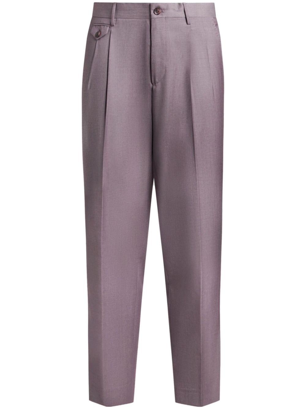 tapered wool trousers Highlights - Mauve - Front button and zip fastening - Two side slit pockets - Two rear button-fastening pockets - Pressed crease Made in Italy Composition Wool 100%