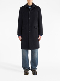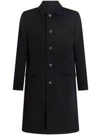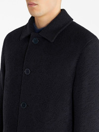 textured-finish button-down coat This single-breasted coat from ETRO's AW23 collection features a classic navy-blue colourway. Crafted from virgin wool and cashmere, it has a classic straight cut and signature paisley-jacquard lining. Highlights - Black - Virgin wool-cashmere blend - Textured finish - Spread collar - Front button fastening - Two front flap pockets - Long sleeves - Straight hem - Knee-length Made in Italy Composition Lining: Cupro 50%, Viscose 50% Outer: Virgin Wool 93%, Cashmere 7% Sleeve Lining: Viscose 100% SIZE & FIT FittingInformation Designed to be unstructured, offering a loose fit throughout The vented hem offers movement at the rear Made from a midweight non-stretch fabric This piece fits true to size – take your usual size Washing instructions Read Manufacturer Guidelines