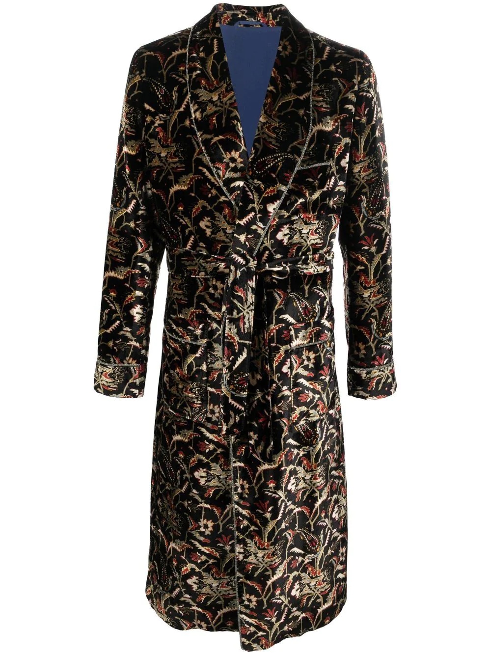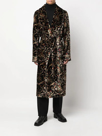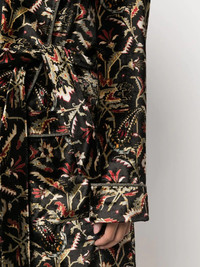 tie-waist floral-pattern coat black/multicolour patterned floral print tied waist two front pouch pockets long sleeves long length Made in Italy Composition Outer: Viscose 82%, Silk 18% Lining: Silk 100%, Viscose 100% SIZE & FIT Model measurements Height 6 ft 1 in(1.86 m) Bust/Chest 36.61 in(93 cm) Hips 37 in(94 cm) Waist 28.74 in(73 cm) FittingInformation This piece fits true to size. We recommend you get your regular size Cut for a loose fit Made with a mid-weight non-stretch fabric Washing instructions Specialist Cleaning