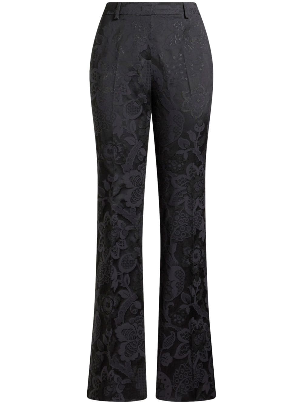 tonal-design jacquard trousers Highlights - Black - Patterned jacquard - Tonal design - Concealed fly and button fastening - High-waisted - Belt loops - Floral motif - Two side slit pockets - Tailored cut Made in Italy Composition Cotton 52%, Viscose 48%