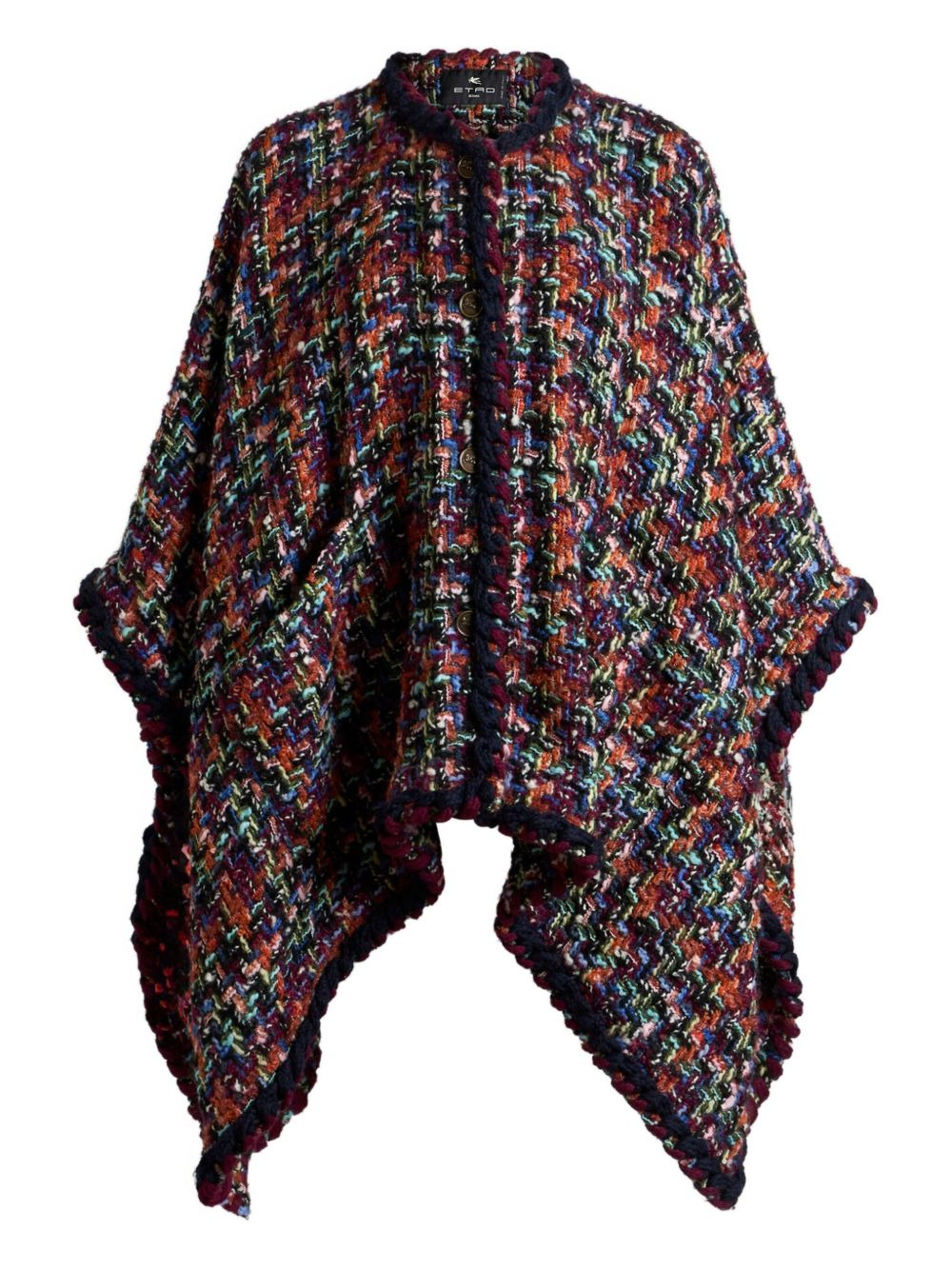 tweed pom-pom trim cape Highlights - Multicolour - Cape design - Open front - Unlined - Asymmetric hem Made in Italy Composition Wool 43%, Mohair 16%, Acrylic 14%, Polyester 11%, Polyamide 9%, Cotton 7% Washing instructions Read Manufacturer Guidelines