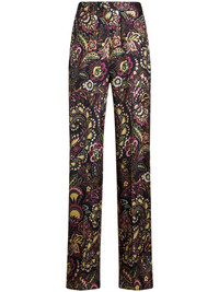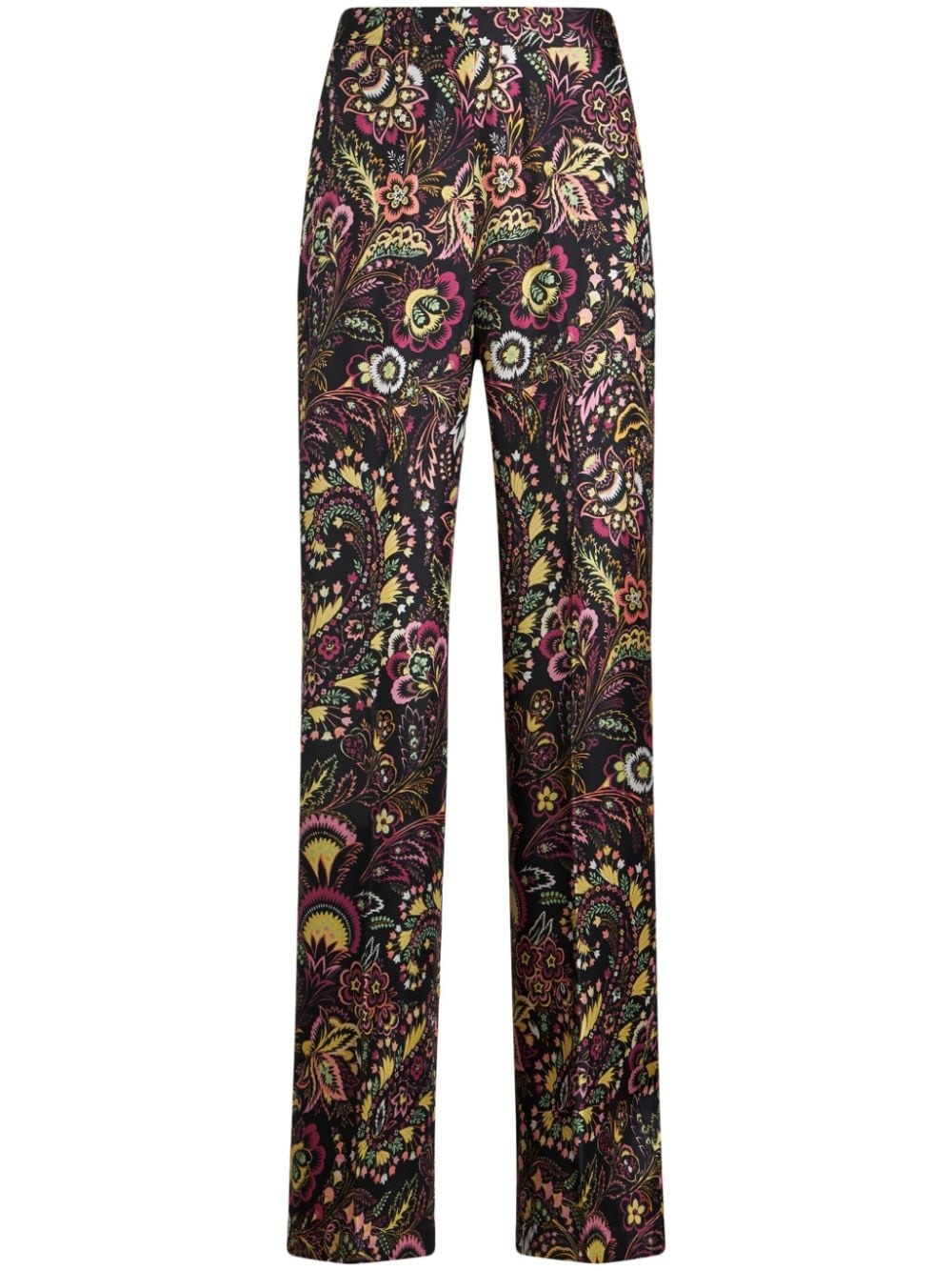 twill-print straight-legged trousers Etro's colourful twill print adorns these straight-legged trousers. Cut with a tailored style, they are handcrafted from smooth pure silk, with a contrasting black background. Highlights - Black/multicolour - Silk - Straight leg - Pressed crease - All-over twill print - Mid-rise - Concealed side zip fastening - Two side slit pockets - Ankle-length - Rear elasticated waistband Made in Italy Composition Silk 100% Washing instructions Read Manufacturer Guidelines