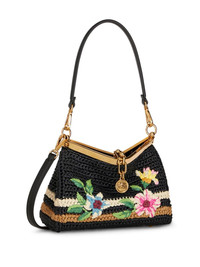 Vela floral-embroidered crossbody bag Highlights - Black/multicolour - Leather trim - Interwoven design - Embroidered design - Signature pegaso motif - Logo charm - Gold-tone hardware - Single top handle - Adjustable shoulder strap - Clasp fastening - Main compartment - Metal feet Made In Italy Composition Outer: Calf Leather 100%, Viscose 100% Lining: Calf Leather 100% SIZE & FIT Measurement DEPTH 3.54 in(9 cm) HEIGHT 6.29 in(16 cm) WIDTH 8.26 in(21 cm)