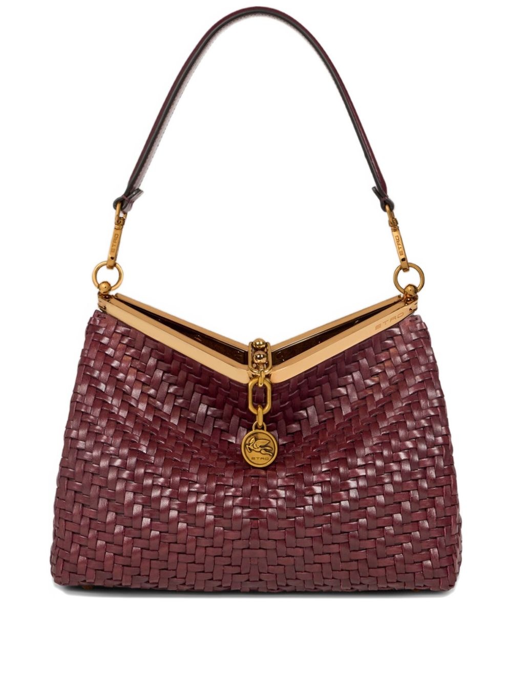 Vela woven leather shoulder bag Highlights - Dark red - Woven leather - Clasp fastening - Detachable shoulder strap - Gold-tone hardware Made in Italy Composition Outer: Leather 100% Lining: Leather 100% SIZE & FIT Measurement DEPTH 4.33 in(11 cm) HEIGHT 8.66 in(22 cm) WIDTH 11.02 in(28 cm)
