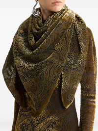 velvet-effect paisley shawl Highlights - Green - Paisley foliage motif - Velvet-effect Made in Italy Composition Velvet 100% SIZE & FIT Measurement LENGTH 55.11 in(140 cm) WIDTH 55.11 in(140 cm) Washing instructions Read Manufacturer Guidelines