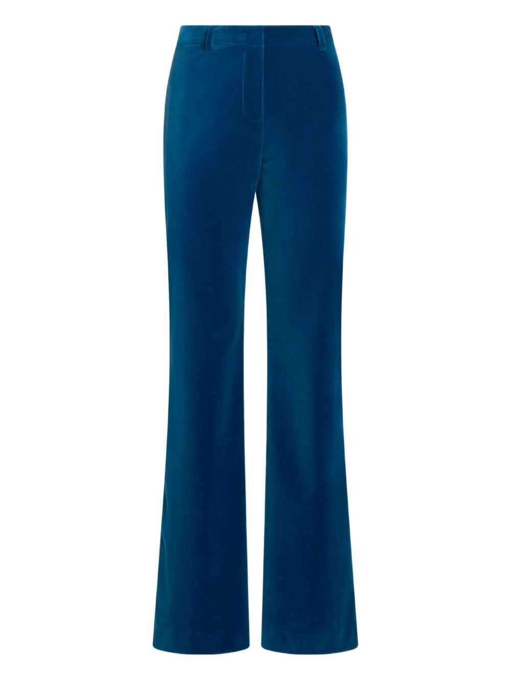velvet flared trousers Highlights - Teal blue - Flared leg - Concealed front fastening - Belt loops - Side slit pockets Made in Italy Composition Cotton 98%, Elastane 2%