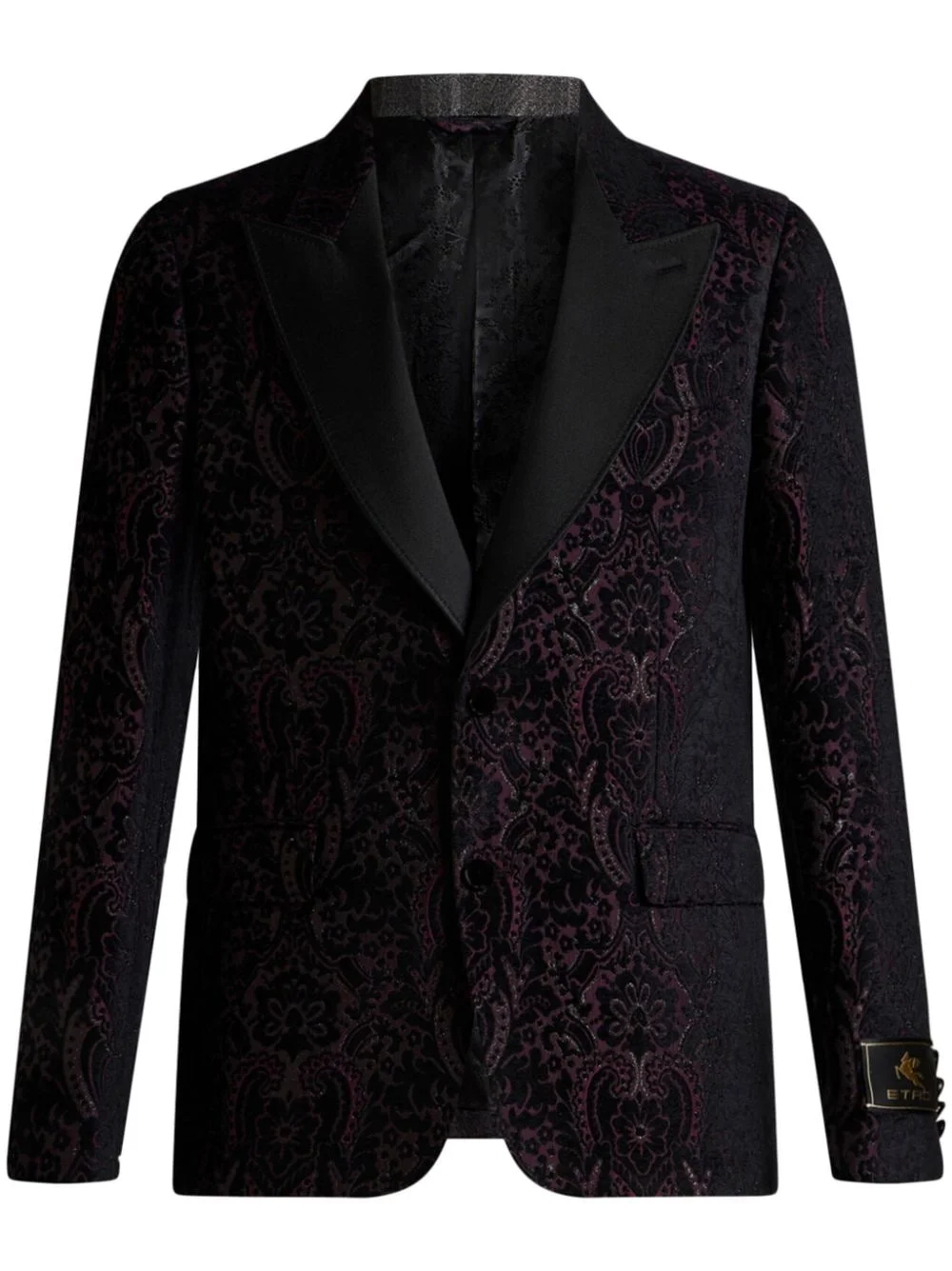 velvet jacquard blazer Highlights - Black - Velvet - Full jacquard - Front button fastening - Paisley print - Notched lapels - Jetted chest pocket - Two front flap pockets - Applique logo - Buttoned cuffs - Central rear vent - Full lining - Straight hem Made in Italy Composition Outer: Silk 78%, Polyester 22%
