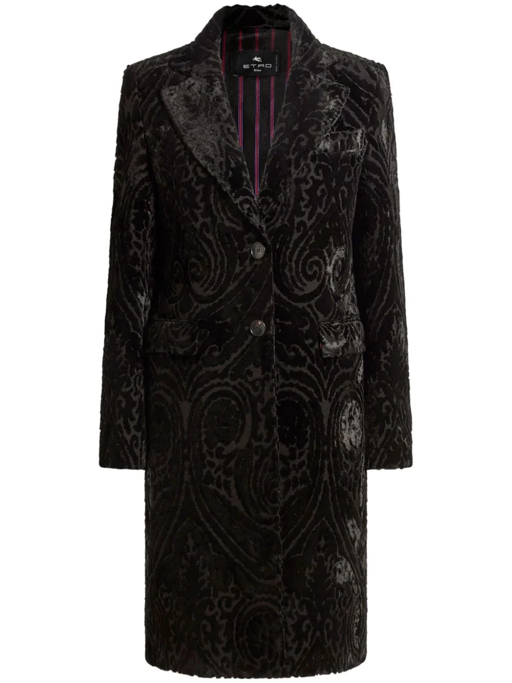 velvet jacquard coat Highlights - Black - Velvet - Jacquard - Front button fastening - Notched lapels - Long sleeves - Two side flap pockets - Straight hem Made in Italy Composition Velvet 100%