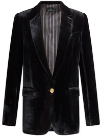 velvet single-breasted blazer Highlights - Black - Silk blend - Velvet finish - Signature pegaso motif - Notched lapels - Front button fastening - Jetted chest pocket - Two side flap pockets - Long sleeves - Buttoned cuffs - Contrast lining - Straight hem Made in Italy Composition Outer: Viscose 80%, Silk 20% Lining: Viscose 52%, Acetate 48%