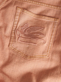 wide-leg denim shorts Highlights - Light orange - Stretch-cotton - Denim - Embroidered logo - High-waisted - Belt loops - Concealed fly and button fastening - Two side slit pockets - Side patch pocket - Two rear patch pockets - Wide leg - Below-knee length Made in Italy Composition Outer: Cotton 98%, Elastane 2% Lining: Viscose 52%, Acetate 48% Washing instructions Read Manufacturer Guidelines