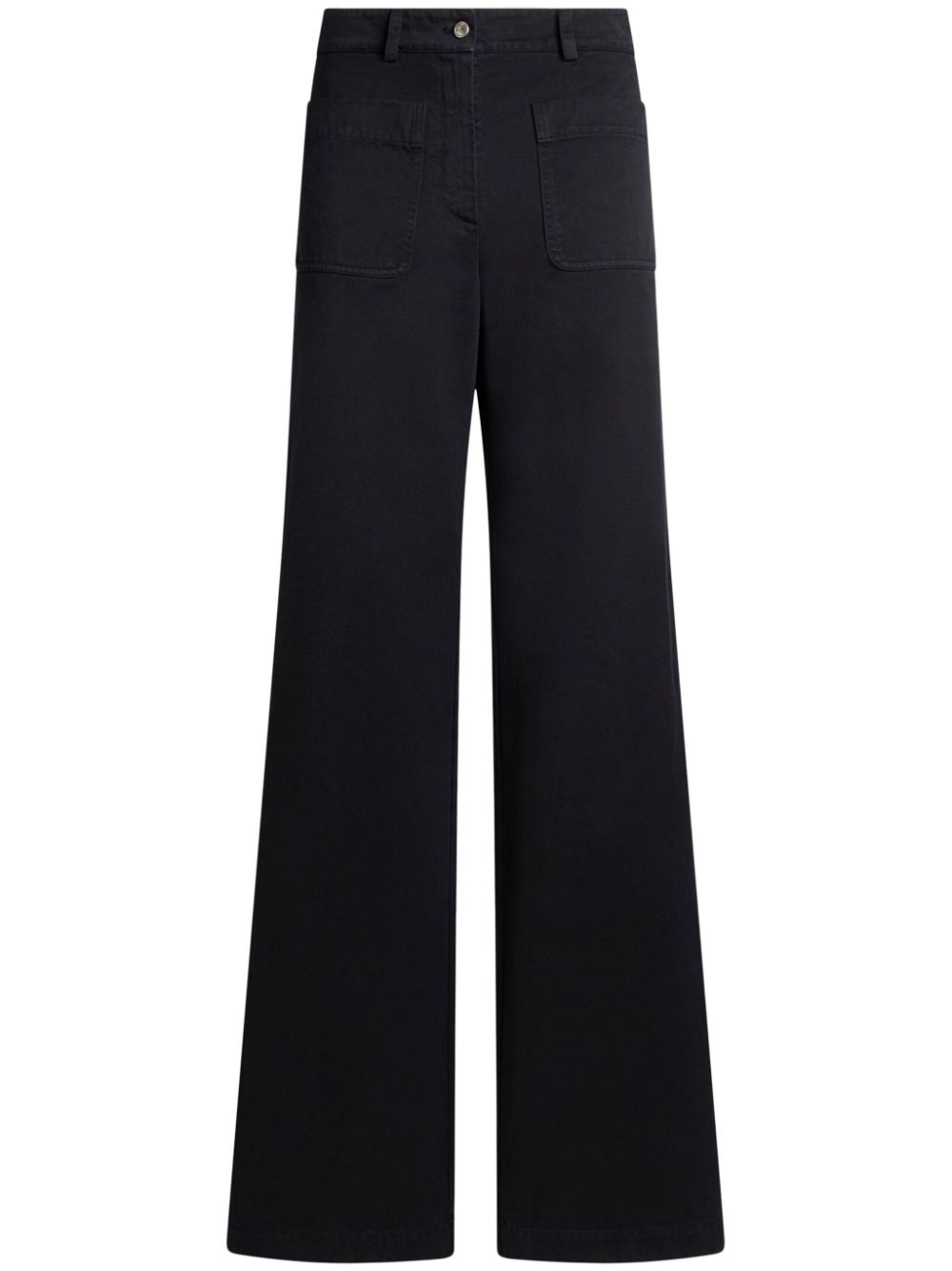 wide-leg trousers Highlights - Black - Button fly fastening - Two front patch pockets - Two rear welt pockets - Floor-length Imported Composition Cotton 100%