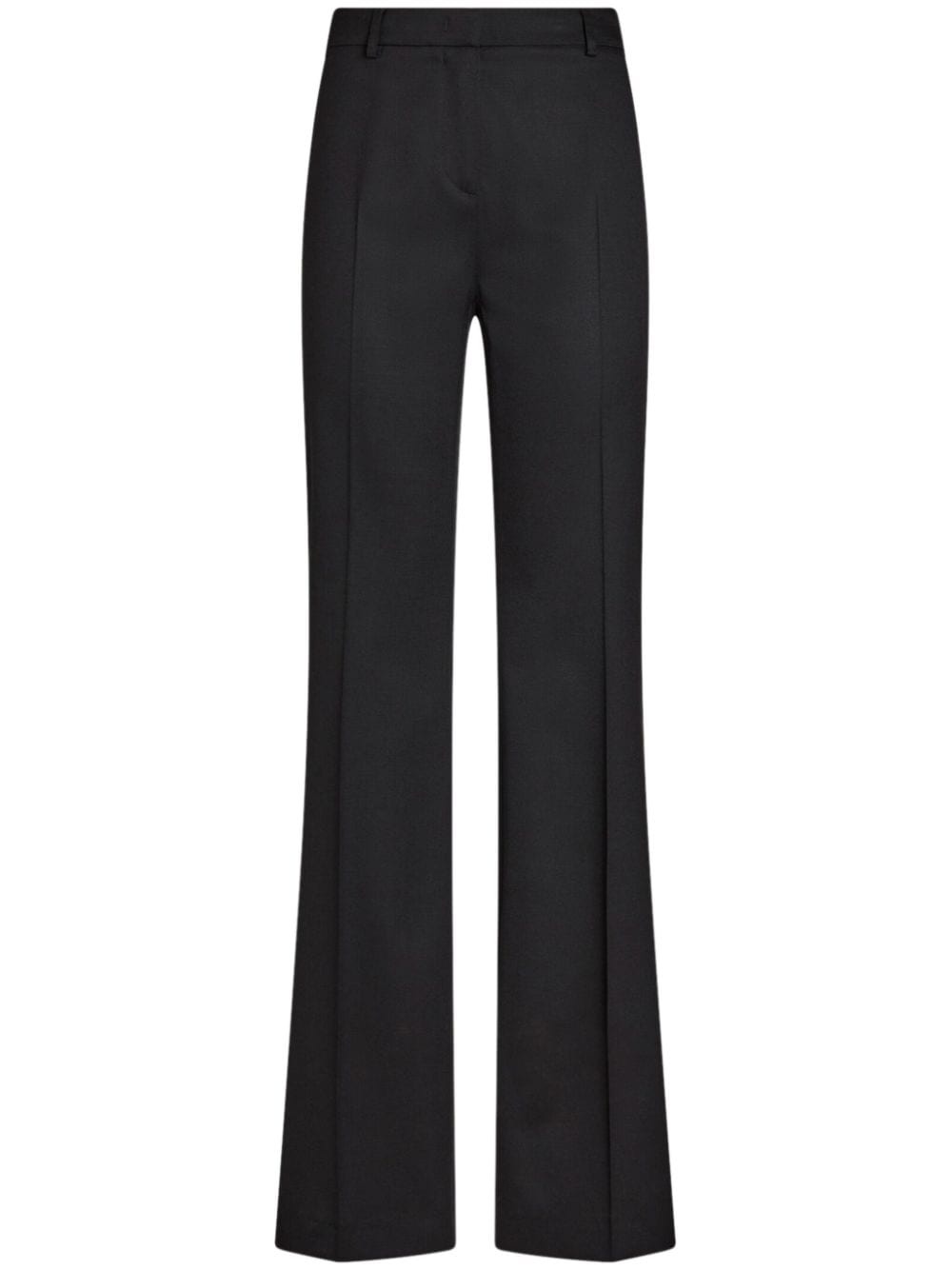 wool flared trousers Highlights - Black - Wool - Concealed front fastening - Pressed crease - Belt loops - Two side slit pockets - Two rear jetted pockets - Flared design Made in Italy Composition Wool 100%