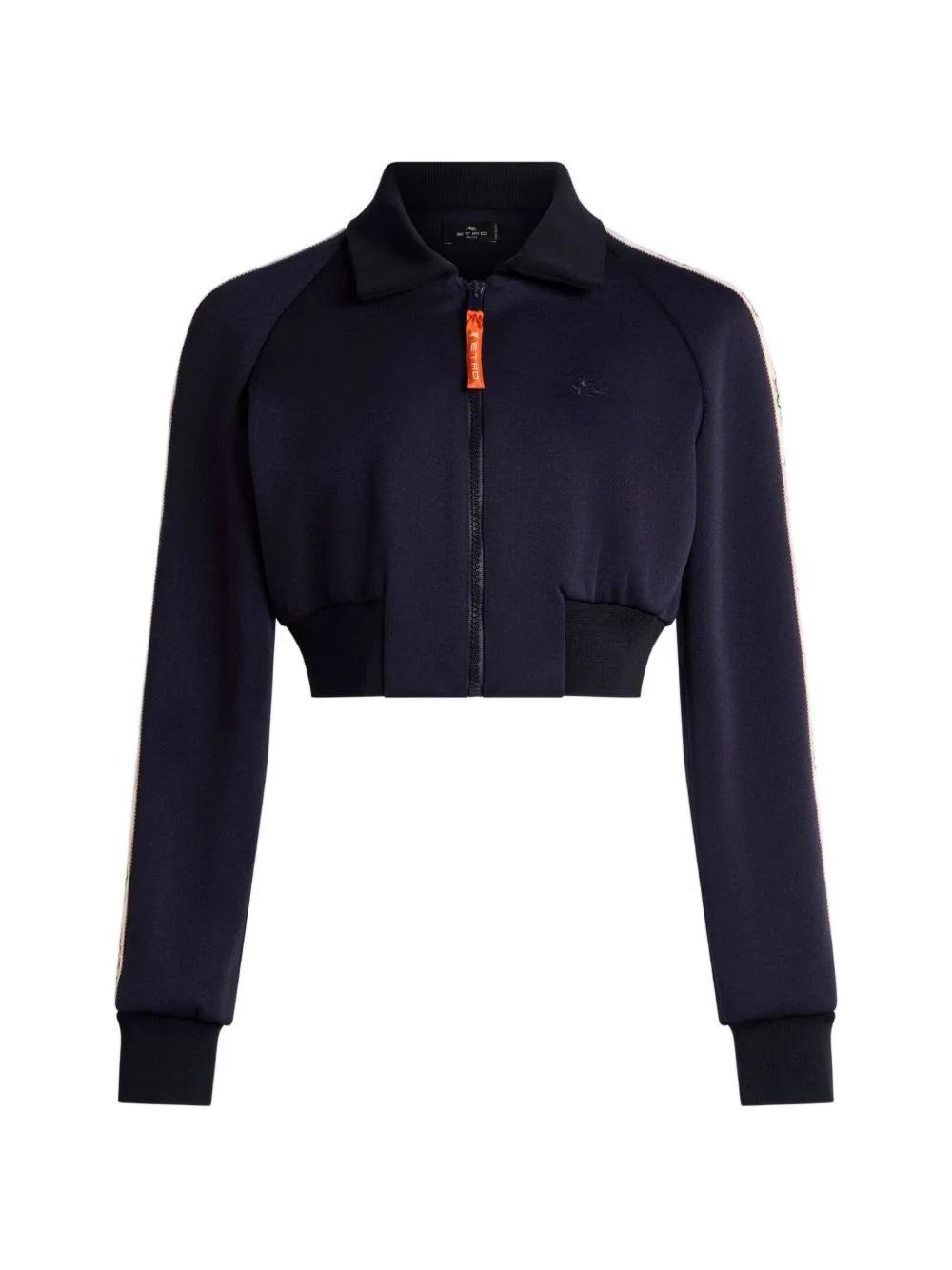 zip-fastening sweatshirt Highlights - Blue - Contrasting bands sleeves - Cropped - Zip fastening - Polo neck - Fitted cuffs Made in Italy Composition Polyester 100% Washing instructions Read Manufacturer Guidelines