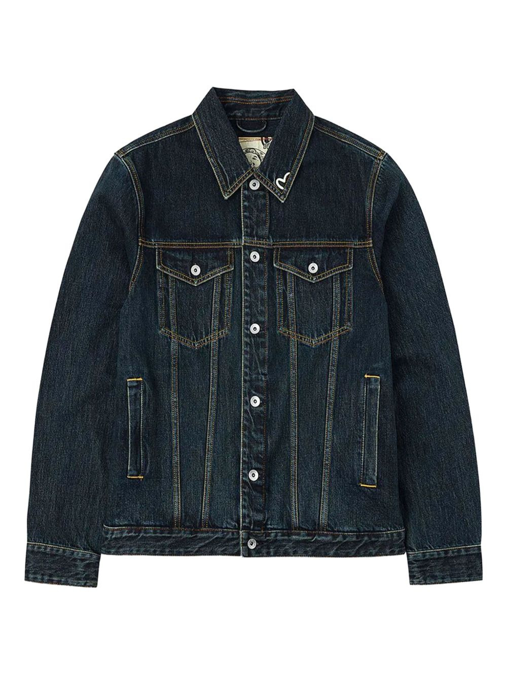 Washed Brushstroke Daicock Print Regular Fit Denim Jacket
