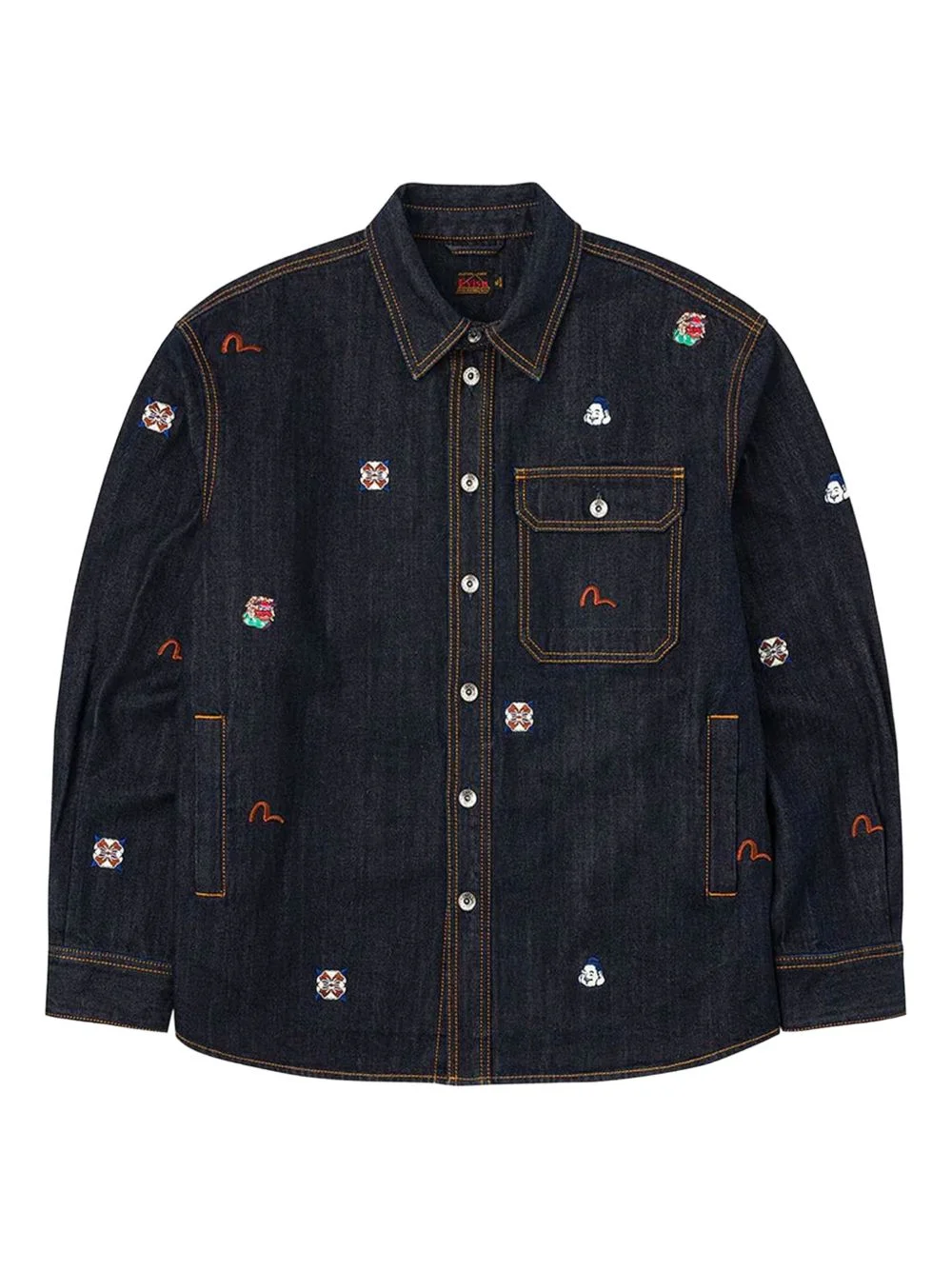 Allover Embroidery Regular Fit Denim Shirt Jacket