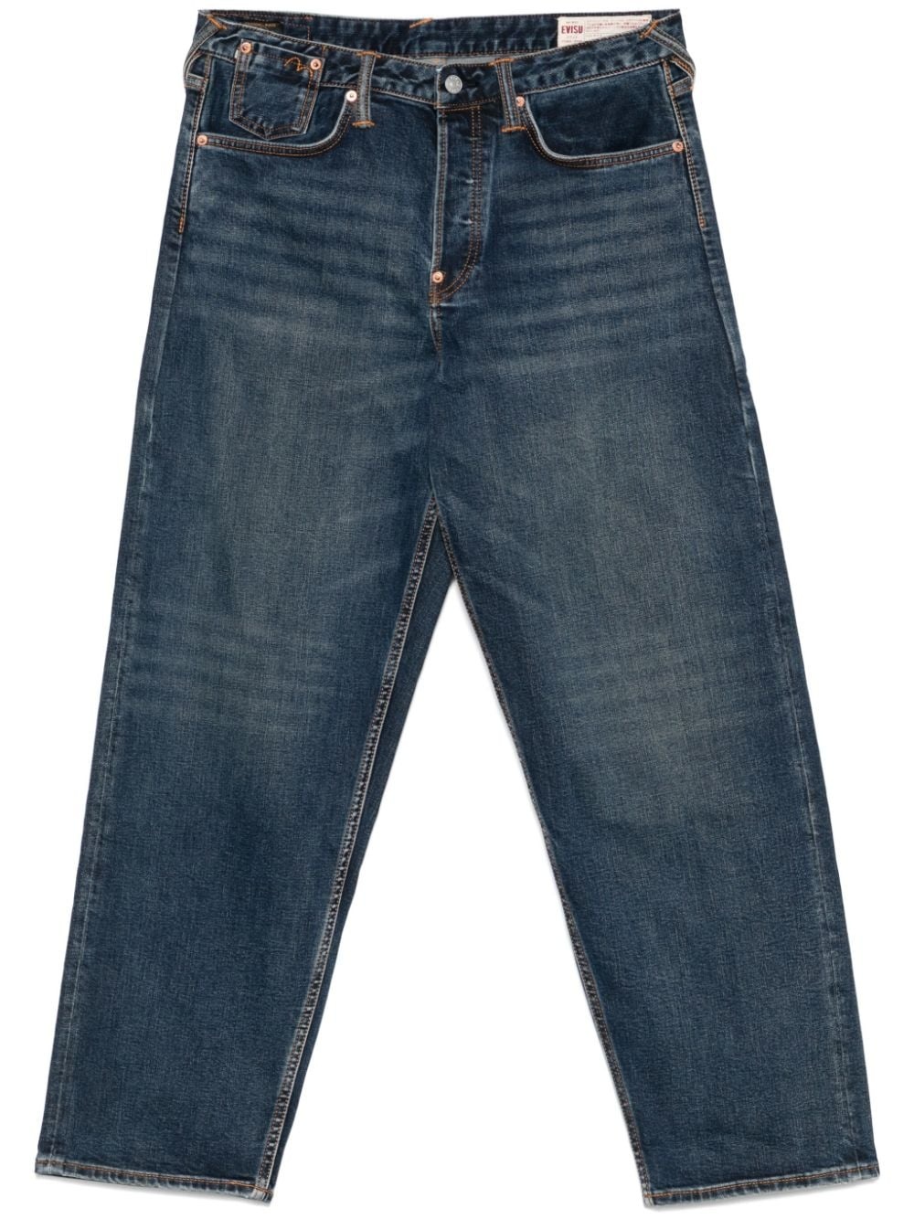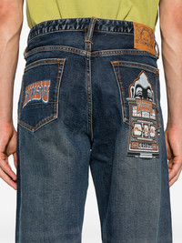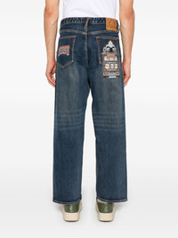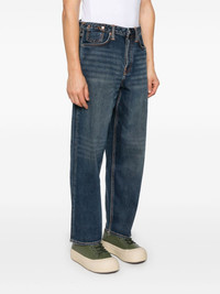 logo-print jeans Highlights - Indigo blue/terracotta orange - Cotton blend - Washed denim - Logo print to the rear - Button fly fastening - Mid-rise - Classic five pockets - Contrast stitching - Whiskering effect - Graphic print to the rear - Wide leg Imported Composition Cotton 78%, Polyester 21%, Elastane 1% SIZE & FIT Model measurements Height 6 ft 2 in(1.87 m) Bust/Chest 37.79 in(96 cm) Hips 37.79 in(96 cm) Waist 30.31 in(77 cm) FittingInformation Designed with a relaxed tapered leg, these jeans allow a comfortable loose fit above the knee and a closer fit towards the calve Constructed from stretch denim, this piece offers a stretch fit with durability