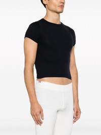 cropped short-sleeve T-shirt Highlights - Navy blue - Cotton blend - Cropped - Round neck - Short sleeves - Straight hem - When buying this unisex item, keep in mind that it is graded in standard men's sizing. Imported Composition Cotton 70%, Cashmere 30% SIZE & FIT Measurement BUST 31.49 in(80 cm) Shoulder Width 2.75 in(7 cm) WAIST 31.49 in(80 cm) Washing instructions Dry Clean Only