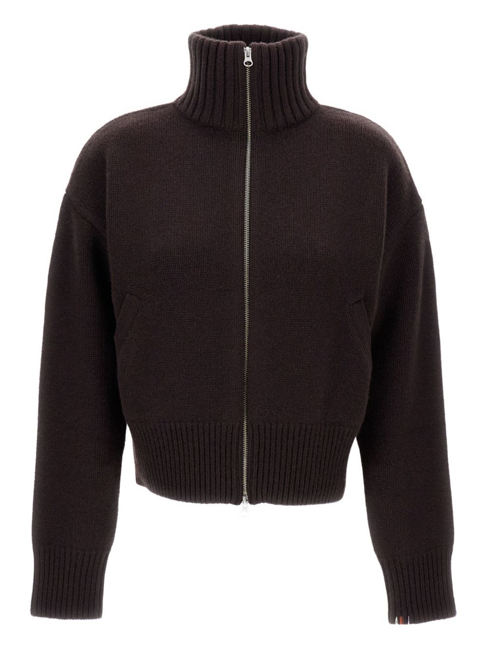 high-neck zip-front cardigan Highlights - Brown - High neck - Front zip fastening - Ribbed trim - Side welt pockets Imported Composition Cashmere 100% SIZE & FIT Measurement CHEST 22.24 in(56.5 cm) LENGTH 21.65 in(55 cm) Washing instructions Machine Wash