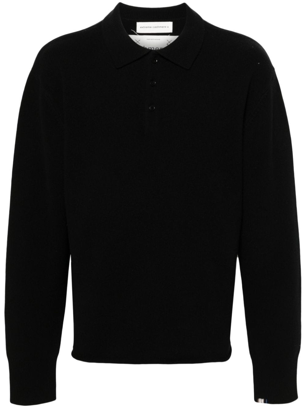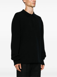 N°357 Marylebone sweater Highlights - Black - Cashmere blend - Ribbed knit - Polo collar - Front button placket - Drop shoulder - Long sleeves with ribbed cuffs - Straight hem - When buying this unisex item, keep in mind that it is graded in standard men's sizing. Imported Composition Cashmere 94%, Nylon 5%, Spandex/Elastane 1% SIZE & FIT Model measurements Height 5 ft 9 in(1.75 m) Bust/Chest 34.64 in(88 cm) Hips 36.61 in(93 cm) Waist 26.37 in(67 cm) Measurement BUST 47.24 in(120 cm) LENGTH 29.52 in(75 cm) SLEEVE LENGTH 28.74 in(73 cm) WAIST 43.3 in(110 cm) FittingInformation This unisex piece is only produced in one size; for help with this item's sizing, refer to our product measurements Made with a midweight knit, this piece offers some stretch
