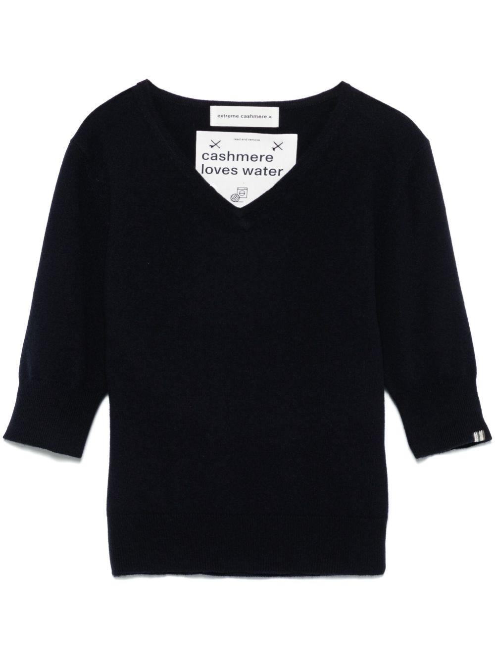 Nº400 Mel T-shirt Highlights - Navy blue - Ribbed v-neck - Half-length sleeves - When buying this unisex item, keep in mind that it is graded in standard men's sizing. Imported Composition Cashmere 100% SIZE & FIT Measurement CHEST 33.85 in(86 cm) Shoulder Width 15.74 in(40 cm) SLEEVE LENGTH 13.38 in(34 cm) WAIST 31.49 in(80 cm) Washing instructions Machine Wash
