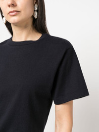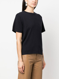 short-sleeve cotton-blend T-shirt Highlights - Navy blue - Cotton/cashmere - Round neck - Short sleeves - Straight hem Imported Composition Cotton 70%, Cashmere 30% SIZE & FIT Model measurements Height 5 ft 11 in(1.8 m) Bust/Chest 33.07 in(84 cm) Hips 37.4 in(95 cm) Waist 25.19 in(64 cm) Measurement BUST 43.3 in(110 cm) Shoulder Width 17.71 in(45 cm) WAIST 37.79 in(96 cm) FittingInformation This is a one size item Cut for a relaxed fit Made with a mid-weight fabric Washing instructions Machine Wash