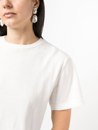 short-sleeve cotton-blend T-shirt Highlights - White - Cotton/cashmere - Round neck - Short sleeves - Straight hem Imported Composition Cotton 70%, Cashmere 30% SIZE & FIT Model measurements Height 5 ft 11 in(1.8 m) Bust/Chest 33.07 in(84 cm) Hips 37.4 in(95 cm) Waist 25.19 in(64 cm) Measurement BUST 39.37 in(100 cm) Shoulder Width 17.71 in(45 cm) WAIST 39.37 in(100 cm) LENGTH 24.4 in(62 cm) SLEEVE LENGTH 7.87 in(20 cm) FittingInformation This is a one size item Cut for a relaxed fit Made with a mid-weight fabric Washing instructions Machine Wash