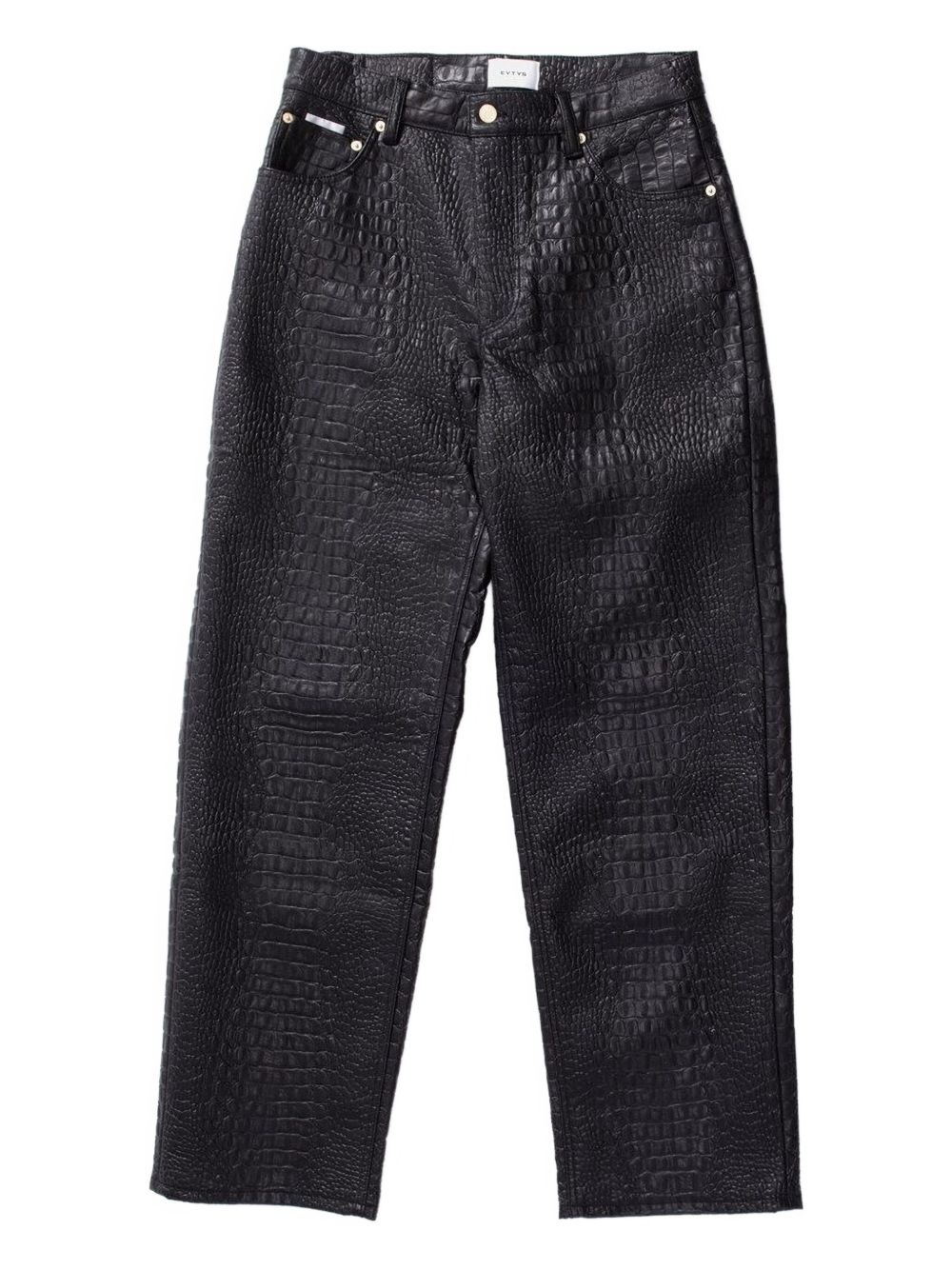 Benz trousers Highlights - Black - Concealed fly and button fastening - Classic five pockets - Embossed crocodile effect Imported Composition Polyester 70%, Polyurethane 30%