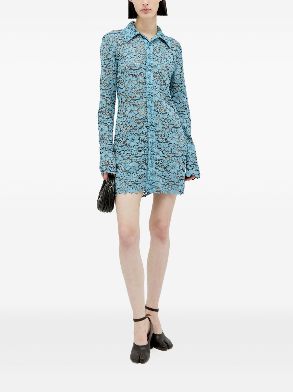 Caprice mini dress Highlights - Aqua blue - Front button fastening - Floral-lace detailing - Scallop edge - Long sleeves Imported Composition Cotton 85%, Polyamide 15% Washing instructions Hand Wash