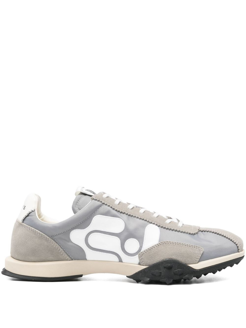 Eros logo-detail suede sneakers Highlights - Grey - Suede panelling - Lace-up fastening - Rubber sole - Graphic logo detail Imported Composition Lining: Polyurethane 100%, Fabric 100% Polyurethane 100% Outer: Calf Suede 100%, Nylon 100% Sole: Rubber 100%, Polyethylene vinyl acetate (PEVA) 100%
