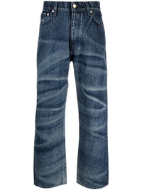 logo-patch cotton wide-leg jeans Highlights - Navy blue - Cotton - Washed denim - Logo patch to the rear - Belt loops - Concealed fly and button fastening - Classic five pockets - Wide leg - When buying this unisex item, keep in mind that it is graded in standard men's sizing. Made in Italy Composition Cotton 100% Washing instructions Machine Wash