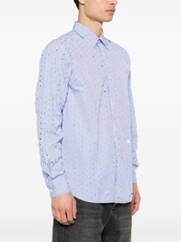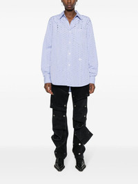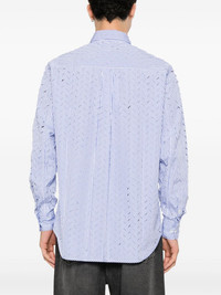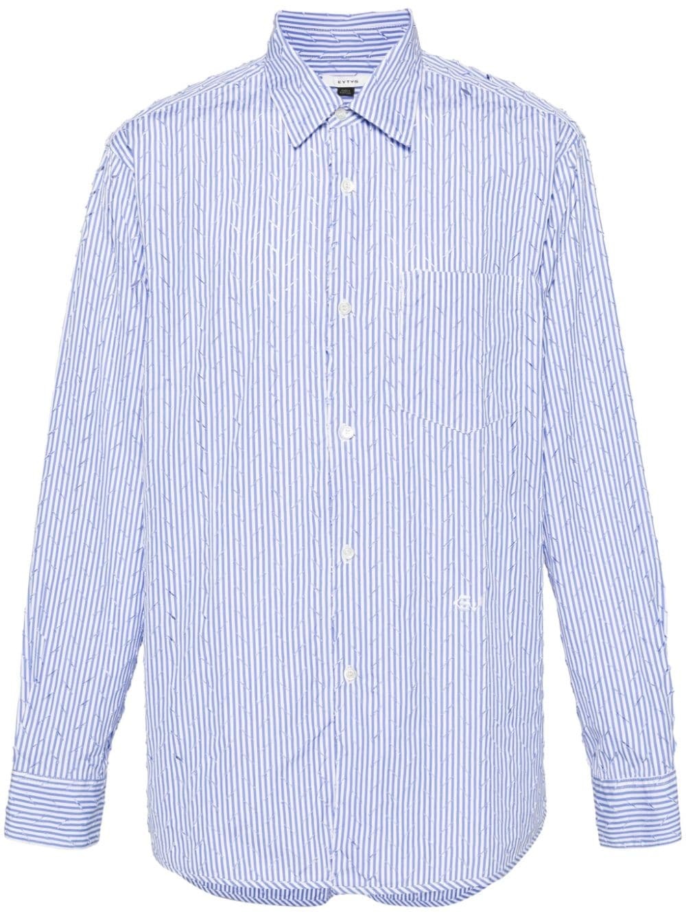 Otis ripped striped shirt Highlights - Sky blue/white - Cotton - Poplin texture - Ripped detailing - Vertical stripe pattern - Pleat detailing - Box-pleat detail - Spread collar - Long sleeves - Buttoned cuffs - Chest patch pocket - Front button fastening - Curved hem - Unlined - When buying this unisex item, keep in mind that it is graded in standard men's sizing. Imported Composition Cotton 100% SIZE & FIT Model measurements Height 6 ft 1 in(1.85 m) Bust/Chest 35.82 in(91 cm) Hips 37.79 in(96 cm) Waist 29.13 in(74 cm) FittingInformation This piece is unisex – if you usually select men's sizing expect a loose fit throughout; if you usually select women's sizes, expect an oversized fit Made from a midweight non-stretch fabric