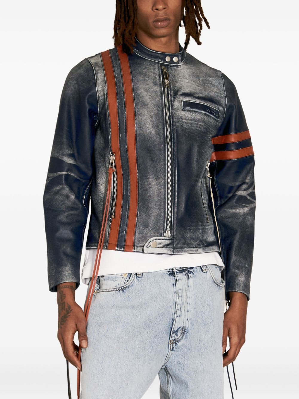 stripe-detail leather jacket