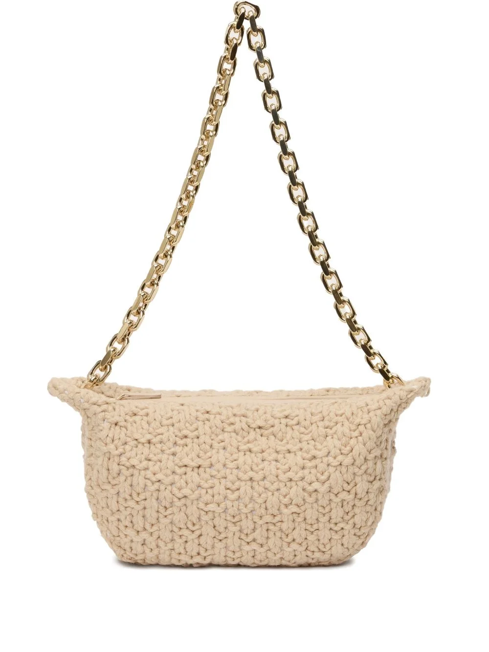 chain-strap knitted shoulder bag Highlights - Beige - Knitted texture - Chain strap - Gold-tone hardware - Curved silhouette - Zip closure Made in Italy Composition Outer: Fabric 100%