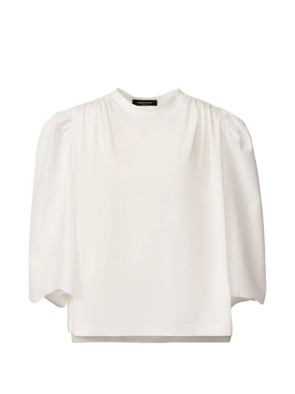 crew neck gathered top Highlights - White - Round neck - Gathered detail - Three-quarter sleeves Made in Italy Composition Fabric 100% Washing instructions Read Manufacturer Guidelines