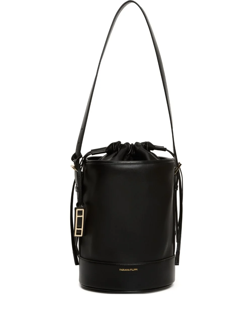 drawstring bucket bag Highlights - Black - Leather - Cylindrical shape - Drawstring closure - Top handle - Gold-tone hardware Made in Italy Composition Outer: Calf Leather 100%