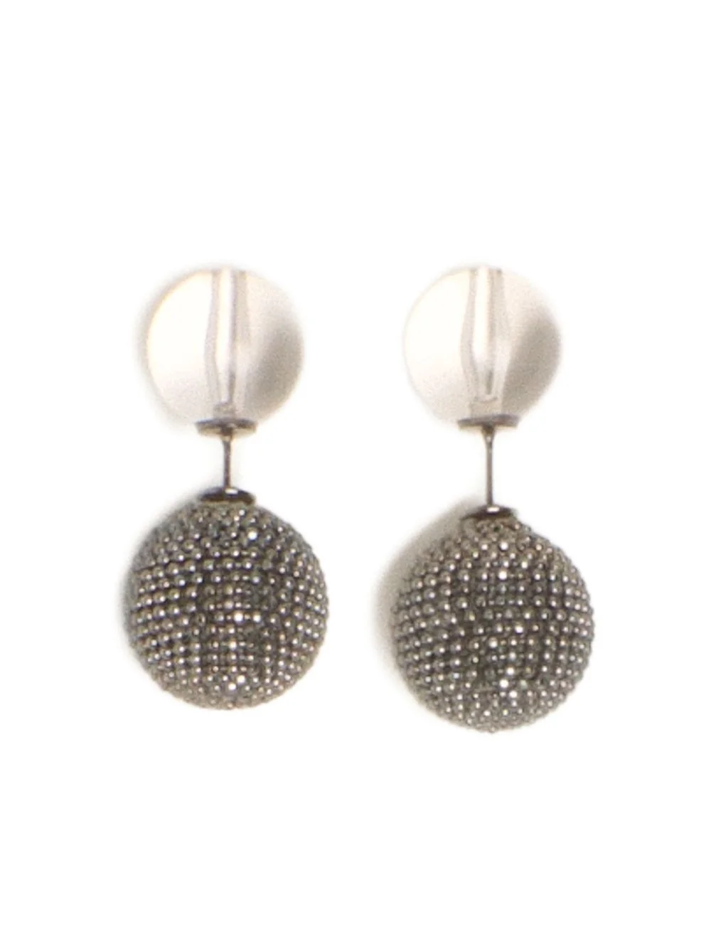 Double ball earrings in plexi and filo diamante