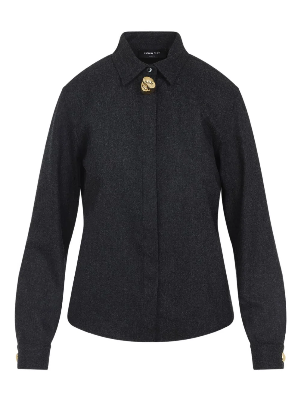 gold-button wool shirt Highlights - Charcoal black - Wool - Long sleeves - Collared neckline - Gold buttons - Button fastening Made in Italy Composition Wool 100% Washing instructions Read Manufacturer Guidelines