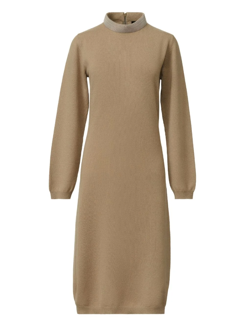 high-neck long-sleeve dress Highlights - Beige - High neck - Long sleeves - Back zip fastening - Straight hemline Made in Italy Composition Fabric 100% Washing instructions Read Manufacturer Guidelines