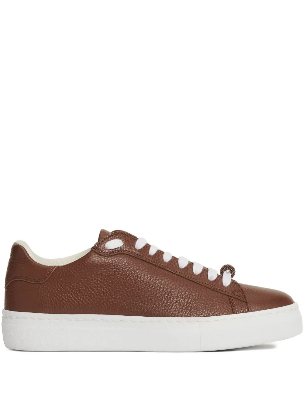loop charm-detail lace-up sneakers Highlights - Brown - Leather - Flat sole - Almond toe - Lace-up fastening - Tonal stitching - Loop charm detail Made in Italy Composition Sole: Rubber 100% Lining: Fabric 100% Outer: Calf Leather 100%