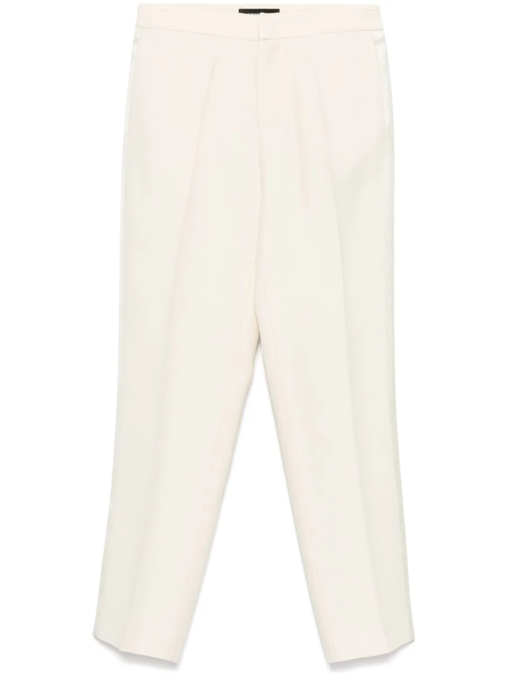 satin-trim trousers Highlights - Light beige - Wool blend - Satin trim - Concealed front button, hook and zip fastening - Two side inset pockets - Pressed crease - Two rear welt pockets - Tapered leg Made in Italy Composition Outer: Wool 77%, Silk 23% Lining: Acetate 88%, Silk 12% Washing instructions Dry Clean Only