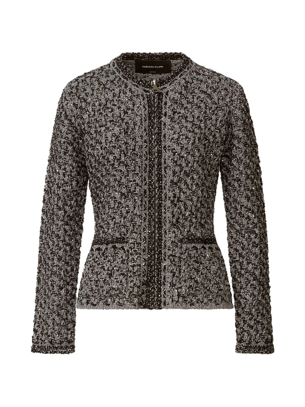 sequin-effect tweed jacket Highlights - Blue - Crew neck - Zip fastening - Long sleeves Made in Italy Composition Cotton 76%, Polyamide 15%, Polyester 9% Washing instructions Read Manufacturer Guidelines