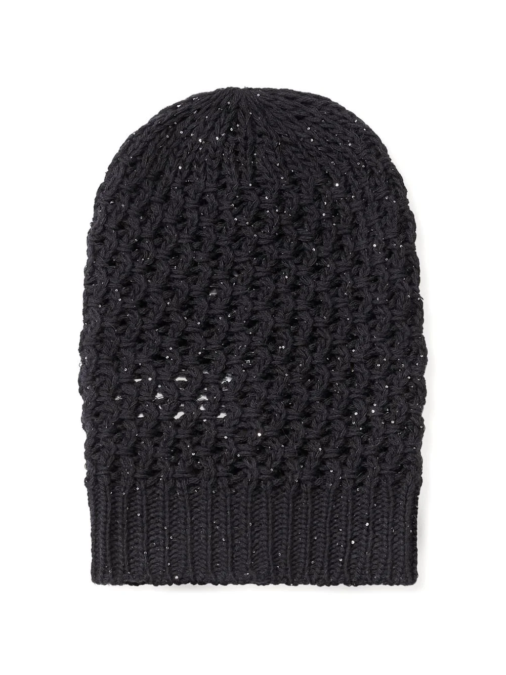 sequinned beanie hat Highlights - Black - Knitted - Ribbed brim - Open stitch design Made in Italy Composition Virgin Wool 59%, Polyester 21%, Silk 12%, Cashmere 8% Washing instructions Read Manufacturer Guidelines