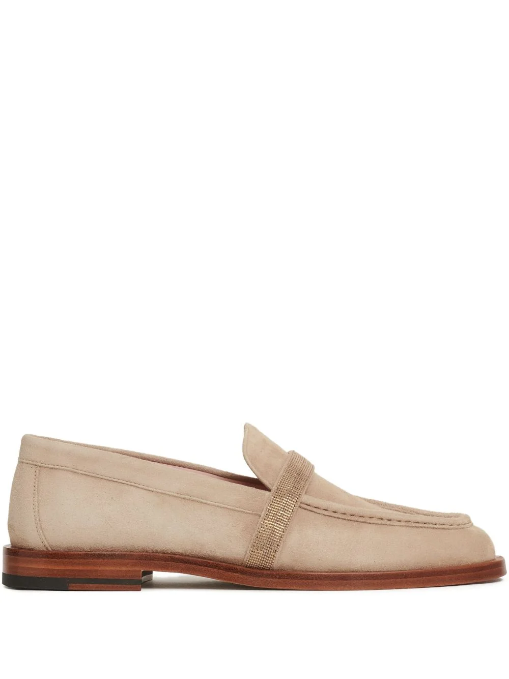 suede embellished loafers Highlights - Light beige - Suede - Leather sole - Embellished strap - Almond toe - Slip-on style Made in Italy Composition Lining: Leather 100% Sole: Leather 100%, Rubber 100% Outer: CALFSKIN 100%