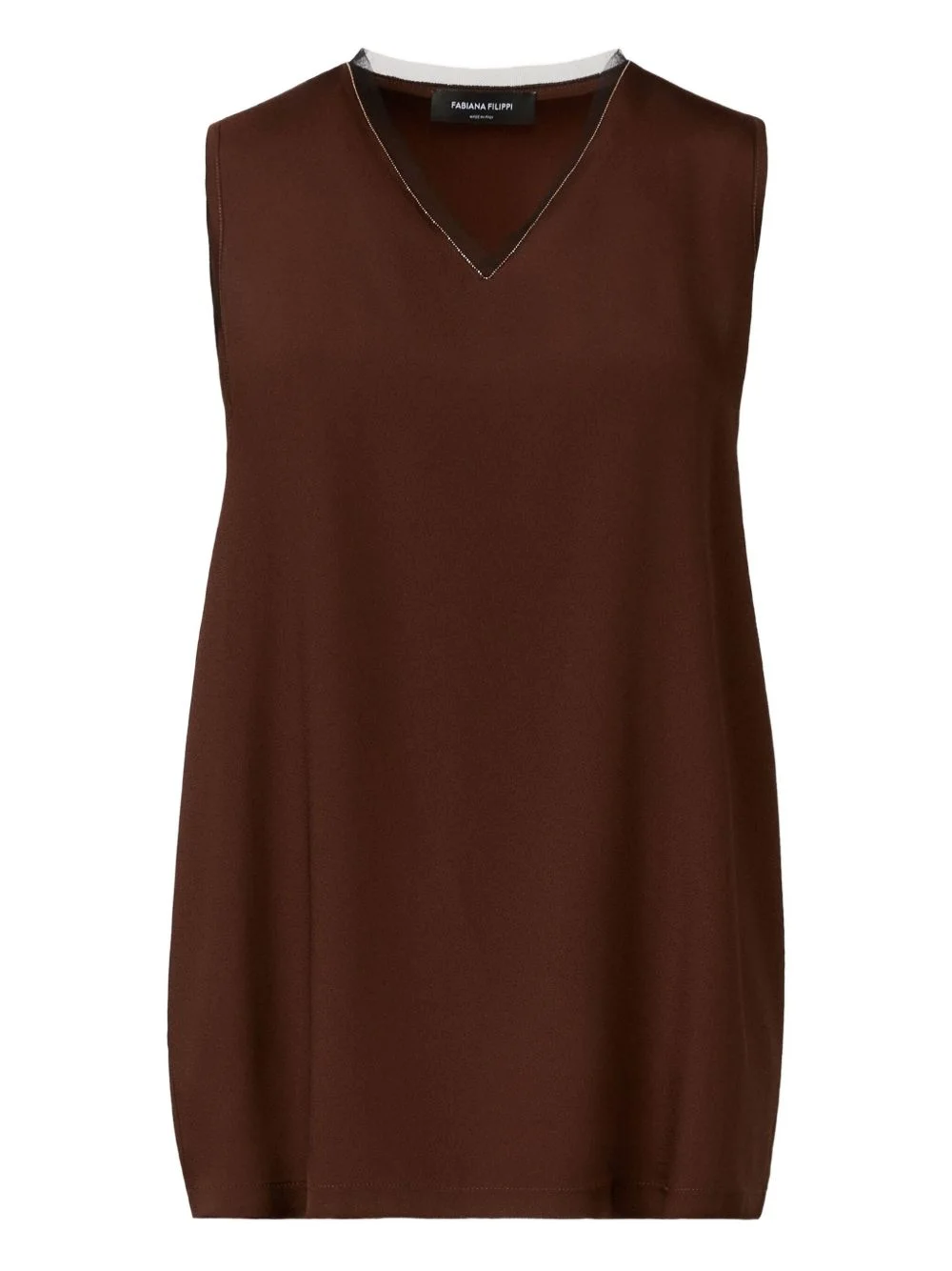 V-neck embellished top Highlights - Brown - V-neckline - Sleeveless - Beaded embellishment - Straight hem Made in Italy Composition Fabric 100% Washing instructions Read Manufacturer Guidelines