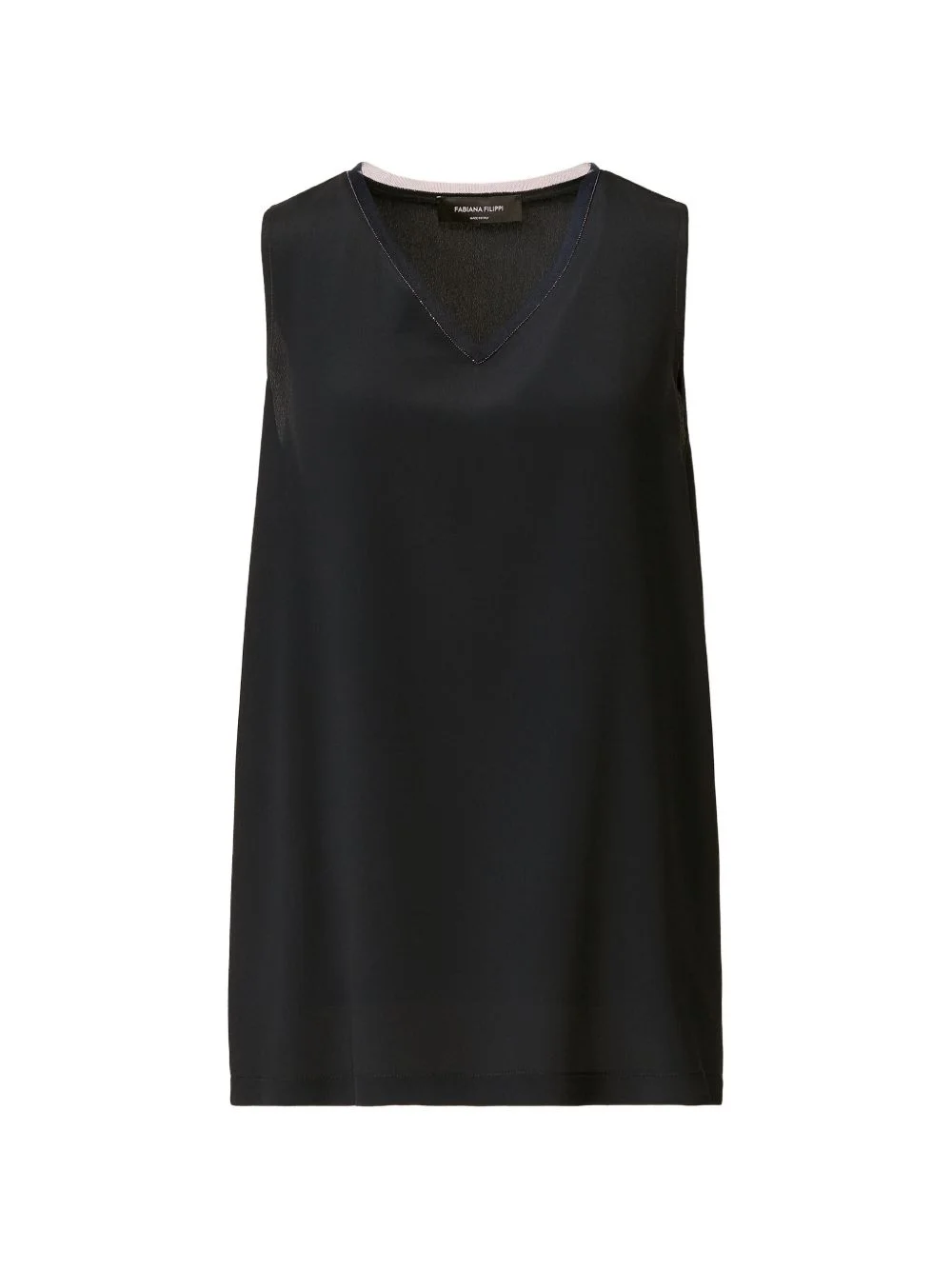 V-neck sleveless top Highlights - Black - V-neck - Sleeveless Made in Italy Composition Acetate 68%, Silk 32% Washing instructions Read Manufacturer Guidelines