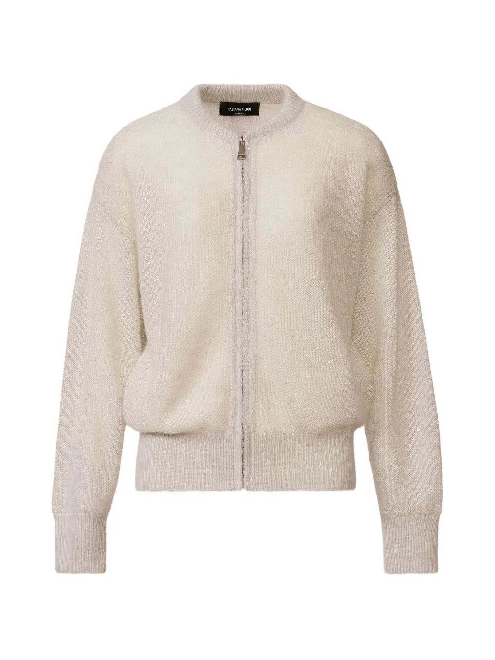 zip-up bomber jacket Highlights - Beige - Ribbed hem - Zip fastening - Round neck - Long sleeves - Ribbed cuffs Made in Italy Composition Polyester 51%, Mohair 18%, Alpaca 18%, Polyamide 13% Washing instructions Read Manufacturer Guidelines